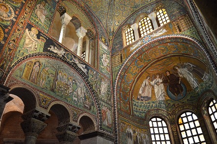 A guide will accompany us inside the Basilica of San Vitale where you can gaze at the bright and shiny mosaics that adorn the altar of this ancient church consecrated in 547; the Mausoleo di Galla Placidia, with the oldest mosaics in Ravenna, probably dating around AD 430; the Basilica of Sant'Apollinare Nuovo and the Neoniano Baptistry.
